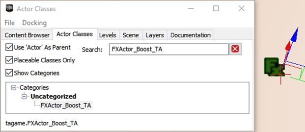 Add FXActor_Boost_TA from the Actor Classes window: